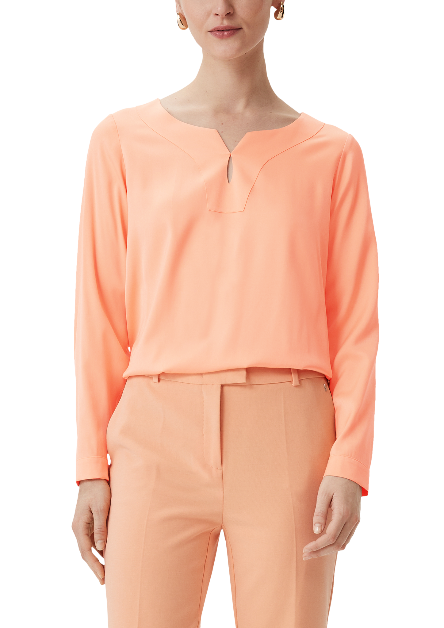 Feminin und elegant präsentiert sich diese Satinbluse mit Tunika-Ausschnitt. Der glatte Regular Fit umspielt gekonnt Ihre Silhouette, während die langen Ärmel und der seitlich geschlitzte Saum für Bewegungsfreiheit sorgen. Ein Business-Piece, das mit seinem eleganten Look überzeugt und sich vielseitig stylen lässt.
