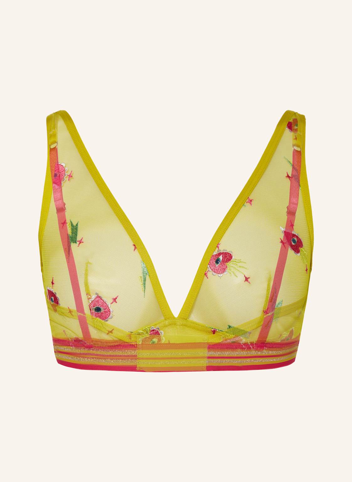 Glänzende Optik. Glatte Haptik. Label-Detail. Mehrfarbiges Muster. Gewebte Qualität