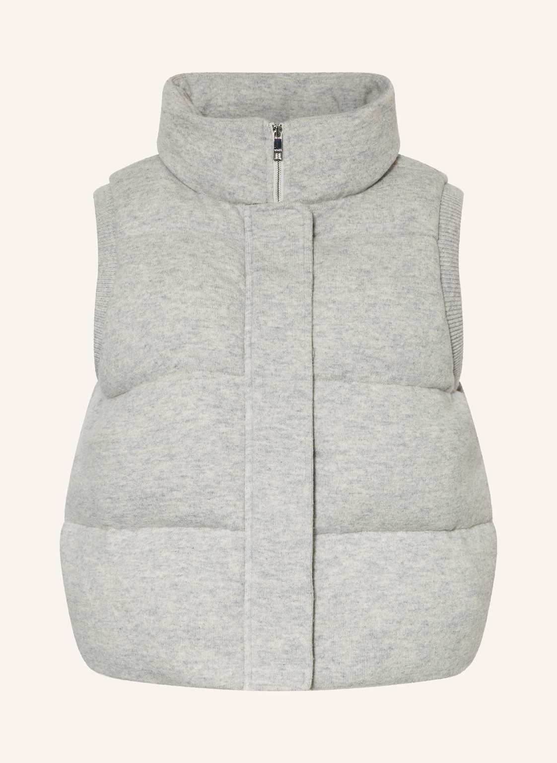 Aus Glattstrick. Gerader Schnitt. Stehkragen. Schließt mit Reißverschluss und verdeckter Druckknopfleiste. Seitliche Eingrifftaschen. Glattes Innenfutter. Synthetische Füllung. Gestepptes Design. Edler Materialmix aus Schurwolle