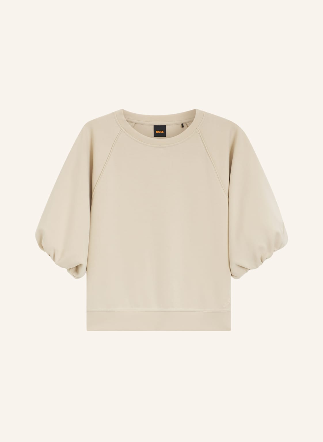 In weiter Passform mit kurzen Ballonärmeln ist das BOSS Sweatshirt aus einem softem, elastischen Modal-Mix gefertigt. Tonales Logo-Detail. Paspeln. Oversize Fit. Rundhalsausschnitt. Kurze Ärmel. Standardlänge