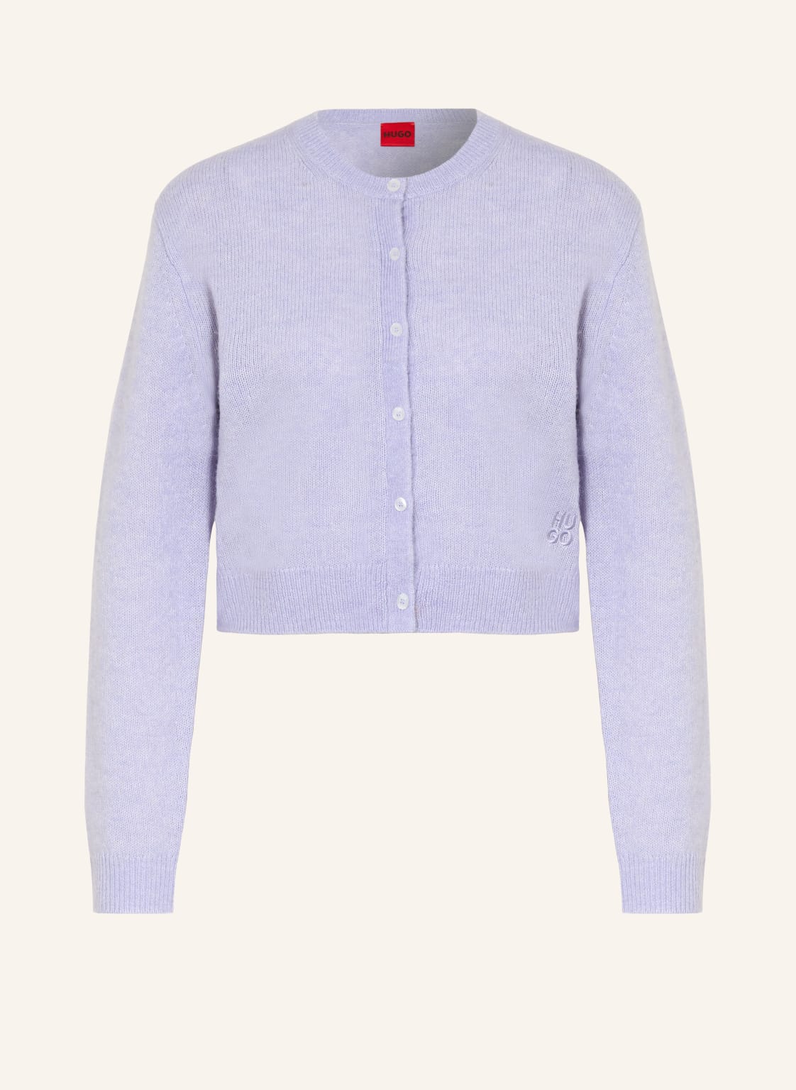 Gerader Schnitt. Rundhalsausschnitt. Rippbündchen an Krage, Ärmeln und Saum. Glatte Innenseite. Label-Badge auf der Brust