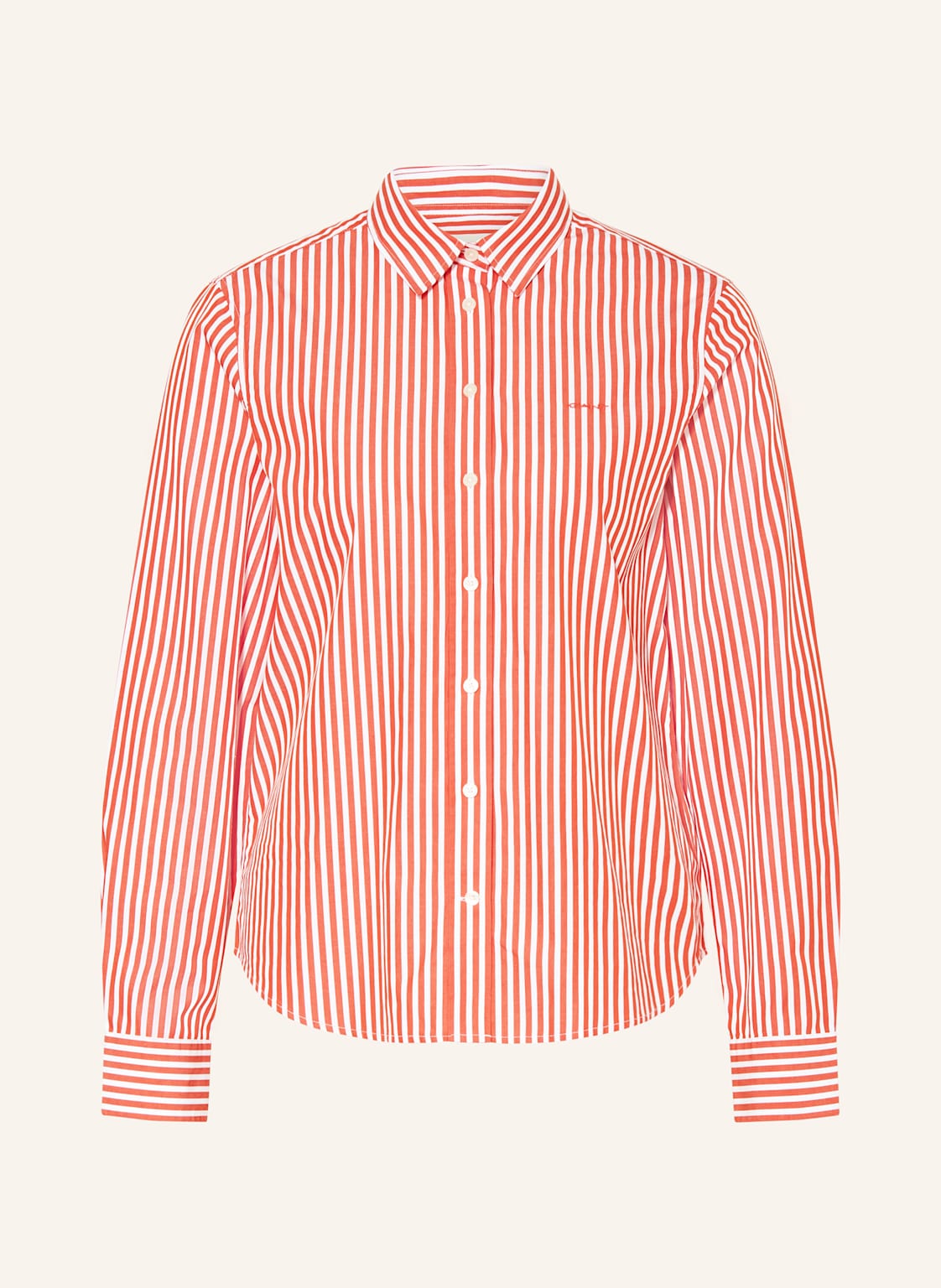 Gerader Schnitt. Breite Rückenpasse. Quetschfalte auf der Rückseite. Hemdblusenkragen. Schließt mit durchgehender, aufgesetzter Knopfleiste. Weitenverstellbare Einknopf-Manschette. Abgerundeter Saum. Gestitchtes Label Wording auf Brusthöhe. Streifenmuster. Reine Baumwolle