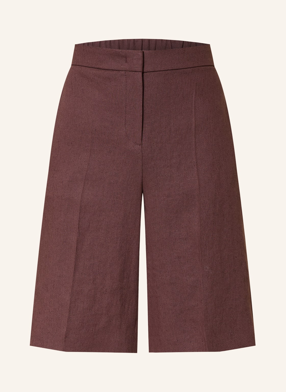 Hohe Leibhöhe. Stretchwaist. Kurzes Bein. Weites Bein. Mit Leinen. Unifarben. Melierte Optik. Seitliche Eingrifftaschen. Knopf-, Haken- und Reißverschluss. Bügelfalten. Strukturierte Haptik