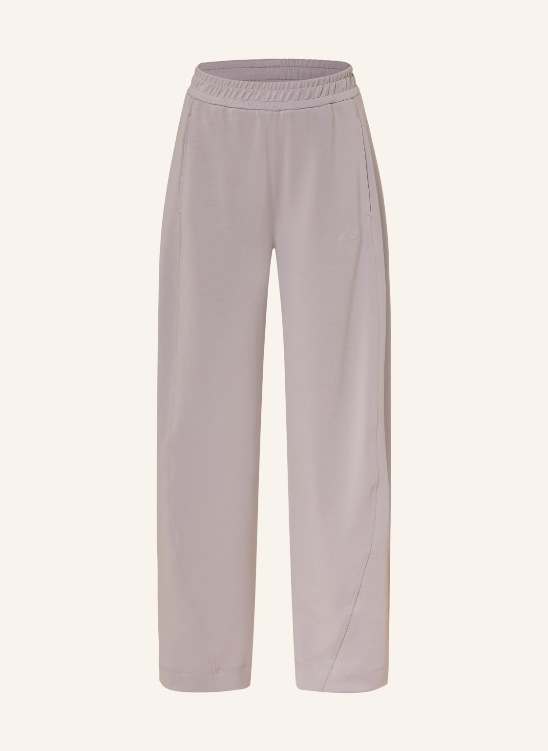 Weites Bein. Elastischer Bund. Weiche Haptik. Glatte Innenseite. Label-Stitching. Unifarben. Seitliche Eingrifftaschen. Verschlusslos. Sweatqualität