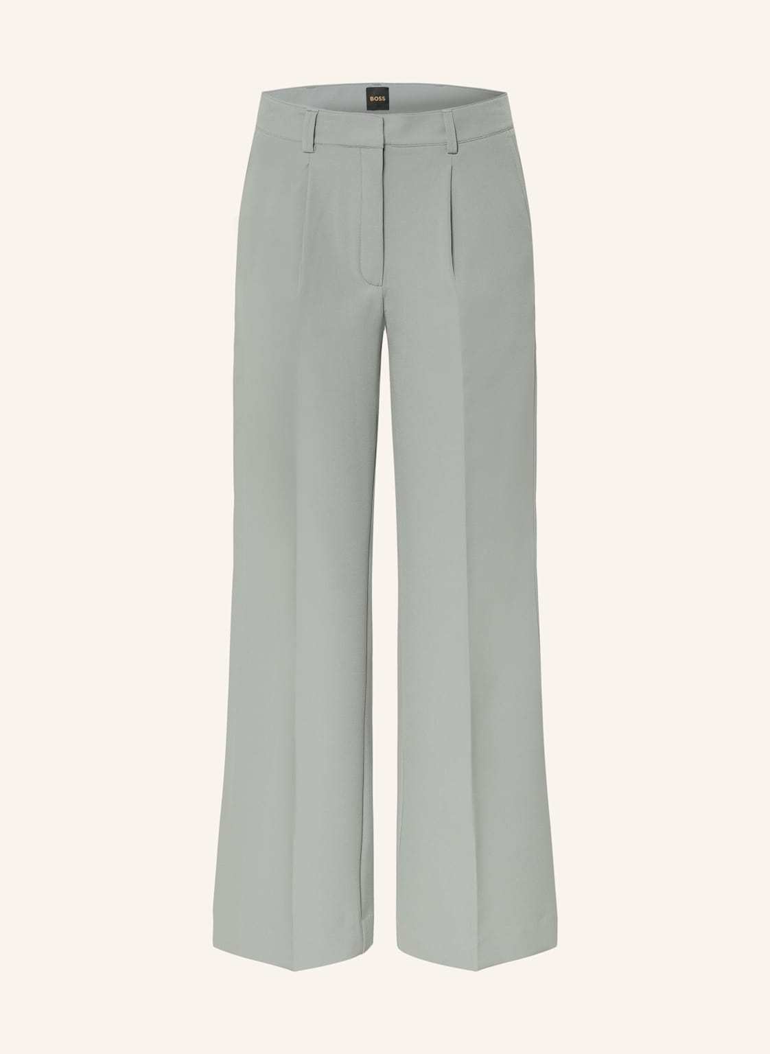 Gerades Bein. Elastischer Bund. Gesteppte Bügelfalten. Strukturierte Haptik. Label-Detail. Unifarben. Melierte Optik. Seitliche Eingrifftaschen. Leistentaschen am Gesäß. Verschlusslos. Jerseyqualität. Hohe Leibhöhe