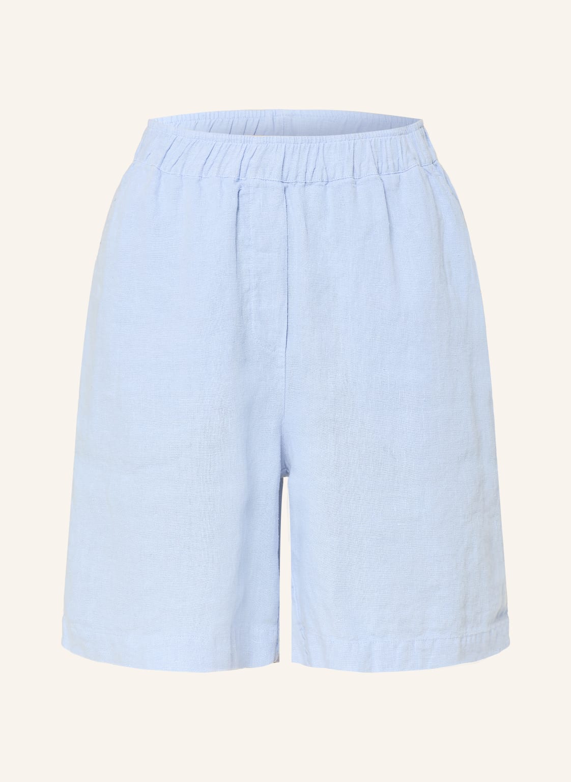 Hohe Leibhöhe. Kurzes, gerades Bein. Elastischer Taillenbund. Seitliche Eingrifftaschen. Reines Leinen
