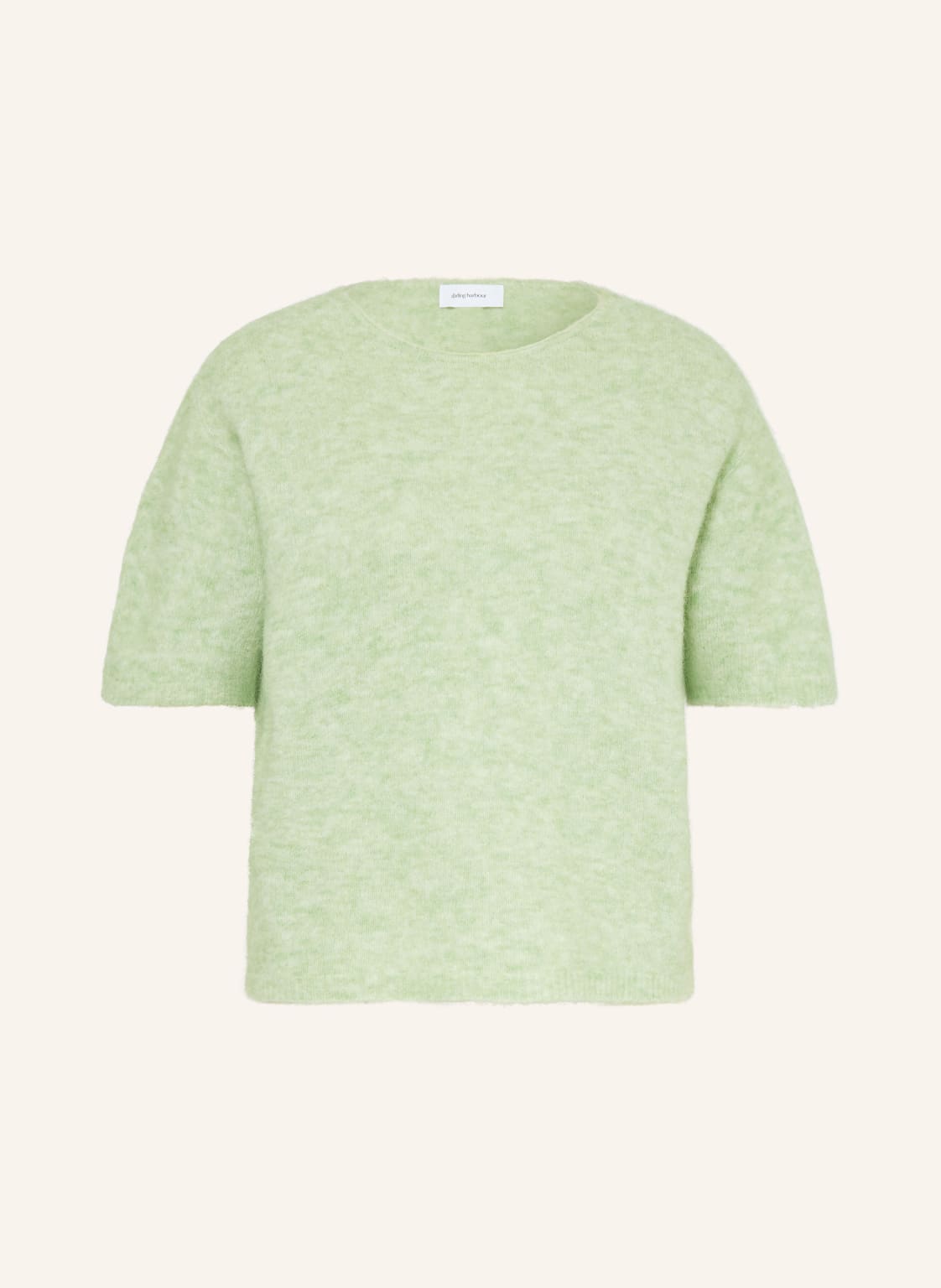 Rippstrick. Gerader Schnitt. Hochabschließender Kragen. Schließt mit Reißverschluss. Mit Wolle