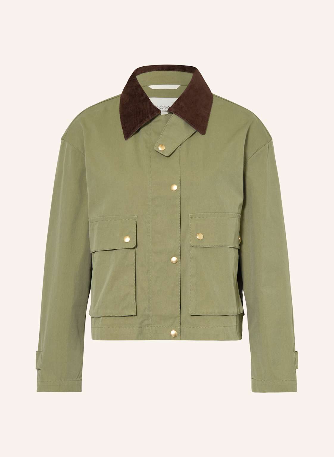 Kastenförmiger Schnitt. Umlegekragen aus Cord. Abnehmbarer Riegel am Kragen. Schließt mit unterlegtem Reißverschluss und Druckknopfleiste. Aufgesetzte Pattentaschen mit Druckknöpfen. Weitenverstellbarer Riegel mit Druckknöpfen an den Ärmelenden. Ohne Innenfutter. Baumwollqualität
