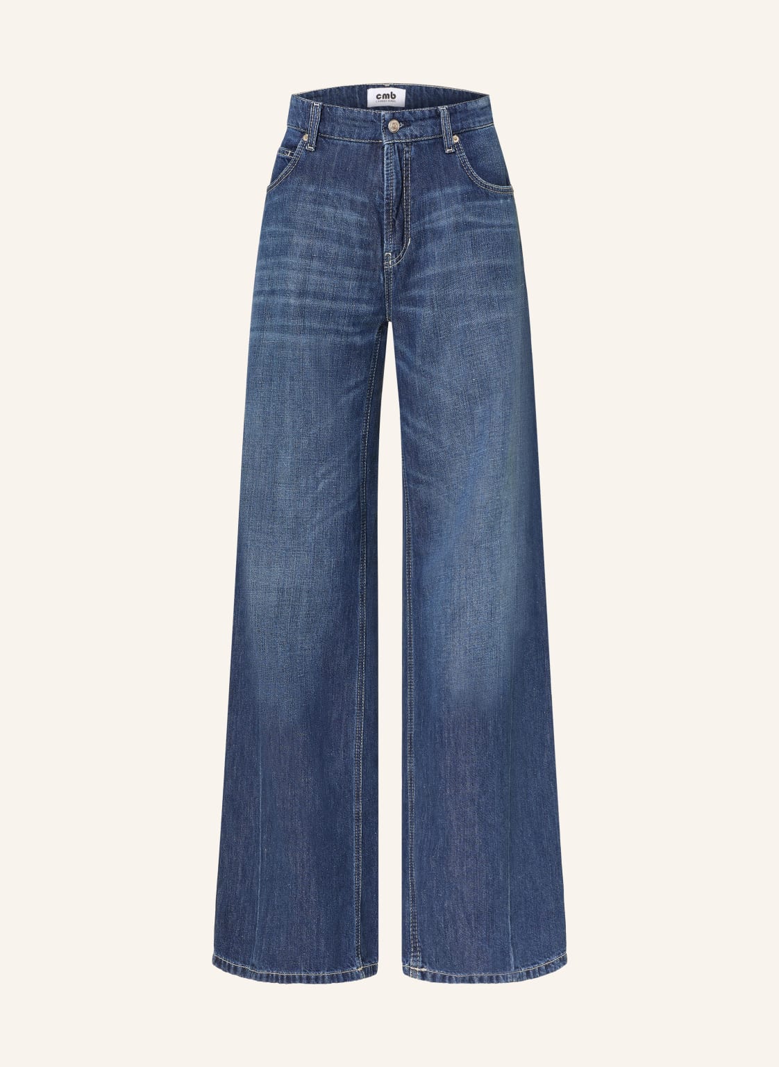 Hohe Leibhöhe. Langes Bein. Weites Bein. Gürtelschlaufen. Label-Details. Mit Baumwolle. Mit Leinen. Dekorative Nähte. 5-Pocket-Style. Zip-Fly-Verschluss. Label-Badge am Bund. Optische Sitzfalten. Used-Waschung. Weiche Denim-Qualität