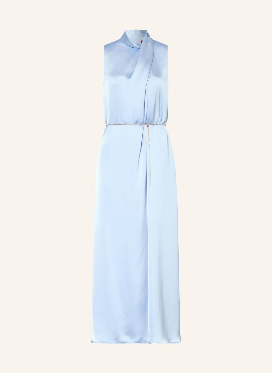 Ärmellos. Gerader Schnitt. Gehschlitz. Abnehmbarer Gürtel. Stehkragen. Label-Detail. Unifarben. Nahtfeiner Reißverschluss in der hinteren Mitte. Gefütterte Verarbeitung. Faltenlegung. Glatte Haptik. Satinqualität