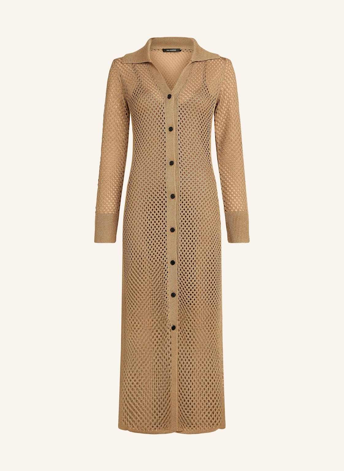 Dieses schimmernde Metallic-Häkelkleid fängt bei jeder Bewegung den Glanz eines Sommerabends an der Riviera ein. Die langärmelige Silhouette legt sich elegant über das herausnehmbare Unterkleid, während kontrastierende Knöpfe und eine Signature-Logostickerei für raffinierte Akzente sorgen. Langärmelige Silhouette aus Metallic-Häkelstrick. Herausnehmbares Slipdress als Unterkleid. Kontrastierende Knöpfe auf der Vorderseite. Das Model ist 179 cm groß und trägt Größe S