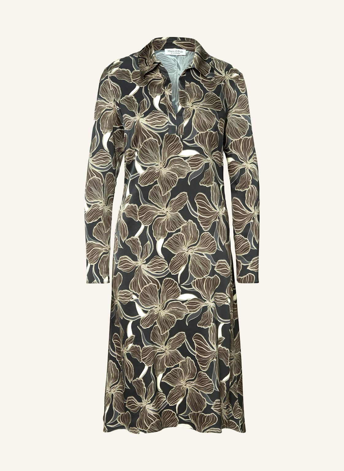 Lean & clean: das gemusterte Kleid hat einen angenehmen Shaped Fit mit einem femininen Umlegekragen und einem geschlitzten Ausschnitt im Polo-Stil. Schlichtes, elegantes Modell mit Brustabnähern, langen, schlanken Ärmeln und praktischem, nahtfeinem Reißverschluss seitlich. Das Kleid ist nicht gefüttert und schmiegt sich bequem an den Körper. Tipp: Mit kräftigen Farben kombinieren – zum Beispiel Rot als Lippenstiftfarbe, Accessoires oder Schuhen. Mittellanges Vikosekleid. Aus ECOVERO™ Viskose von LENZING™. Premium Viskose Stretch mit Elasthan-Anteil. Shaped Fit. Wadenlanger Rock im A-Shape