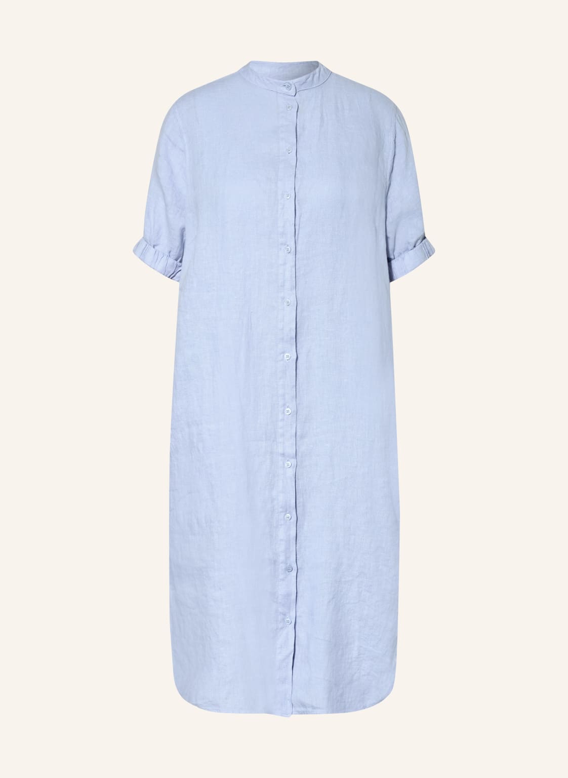Kurze Ärmel. Gerader Schnitt. Elastische Bündchen an den Ärmelenden. Ballonärmel. Rundhalsausschnitt. Gehschlitze. Seitliche Eingrifftaschen. Breite Rückenpasse. Glatte Knopfleiste. Ungefütterte Verarbeitung. Glatte Haptik. Unifarben. Aus Leinen