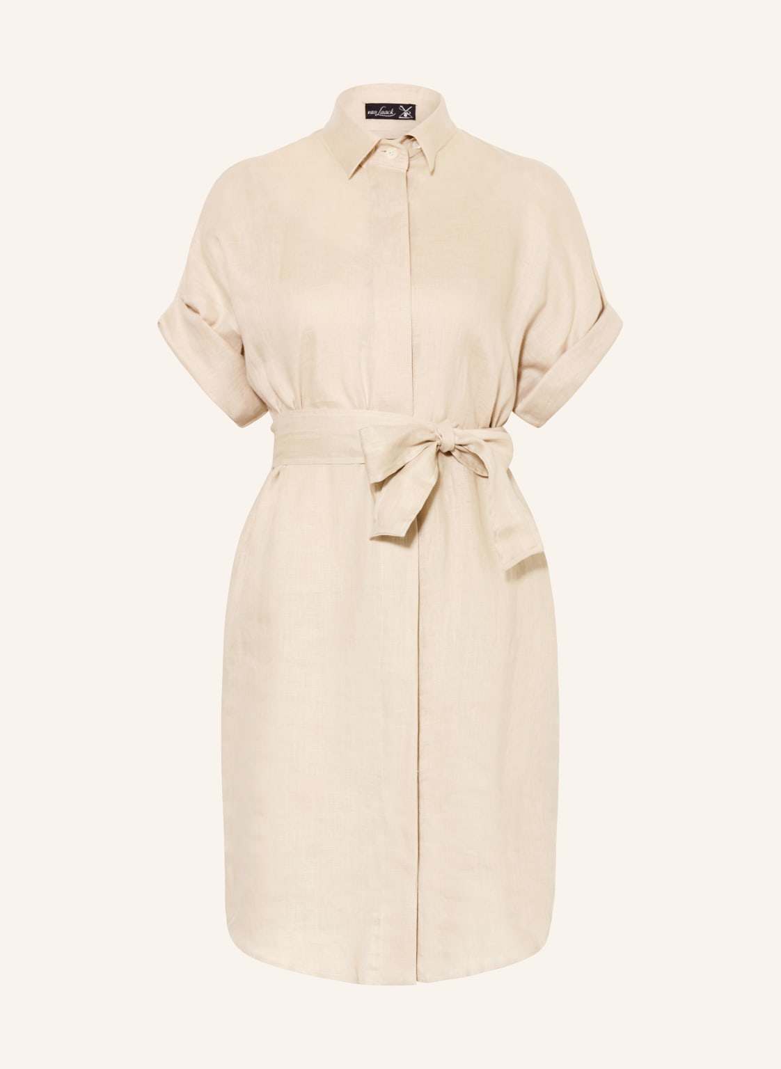 Kurze Ärmel. Gerader Schnitt. Ärmelumschlag. Überschnittene Schultern. Gefütterte Verarbeitung. Strukturierte Haptik. Hemdblusenkragen. Aus Leinen. Unifarben. Seitliche Eingrifftaschen. Breite Rückenpasse. Quetschfalte auf der Rückseite. Verdeckte Knopfleiste