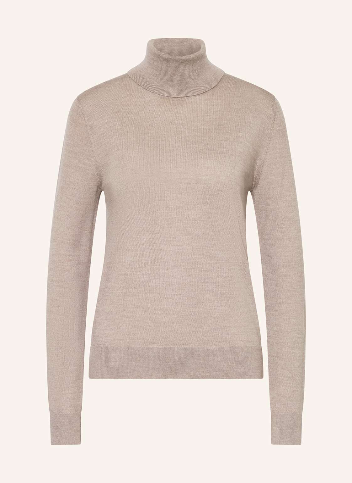 Glattstrick. Gerader Schnitt. Rollkragen. Rippbündchen an Ärmeln und Saum. Weiche Haptik. Reine Wolle