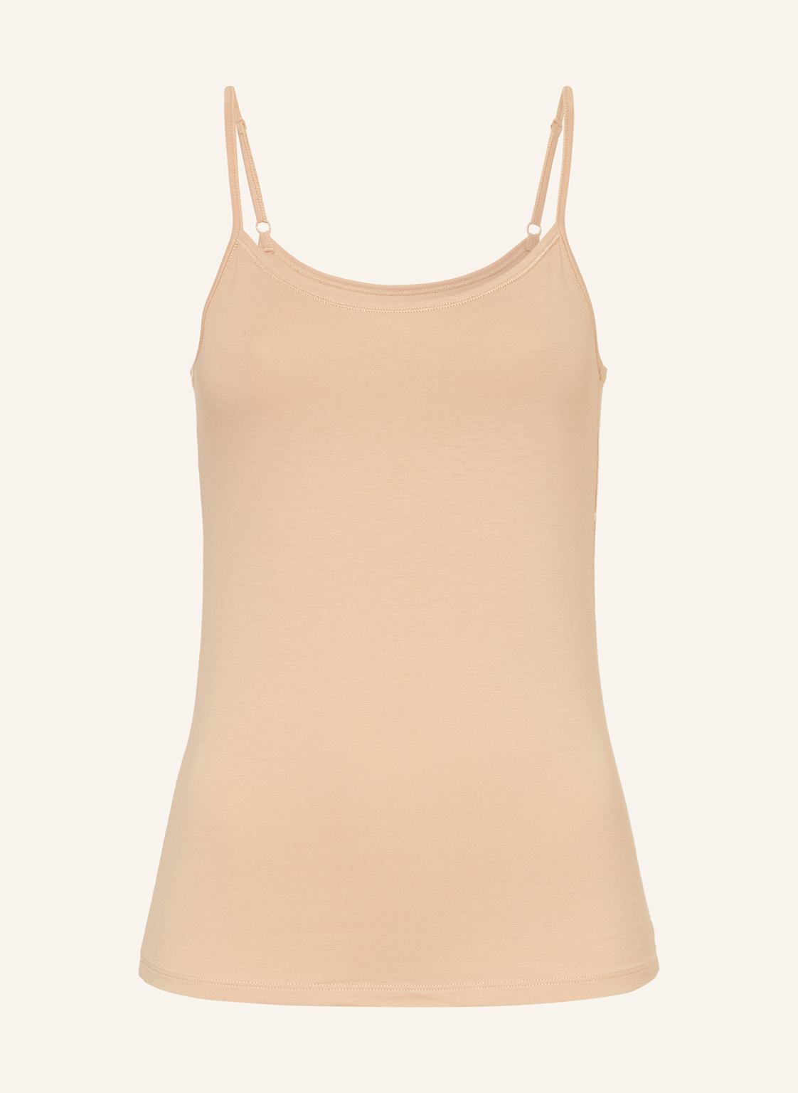 Körpernaher Schnitt. Rundhalsausschnitt. Verstellbare Spaghetti-Träger. Feuchtigkeitsregulierend. Temperaturregulierend dank Outlast®-Technologie. Weiche Haptik. Mit ägyptischer Baumwolle