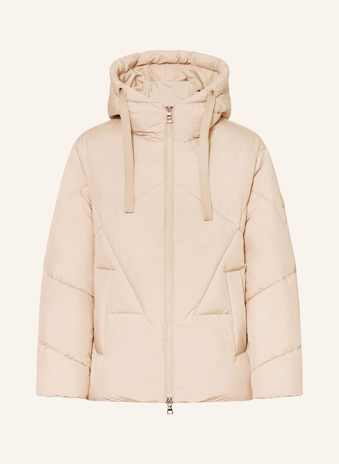 Gerader Schnitt. Kapuze mit Tunnelzug. Schließt mit Reißverschluss. Seitliche Eingrifftaschen. Innentasche. Innenliegende, elastische Bündchen an den Ärmelenden. Tunnelzug mit Kordelstopper am Saum. Glattes Innenfutter. Synthetische Füllung. Wasserabweisend. Label-Badge auf dem Arm. Glatte Haptik