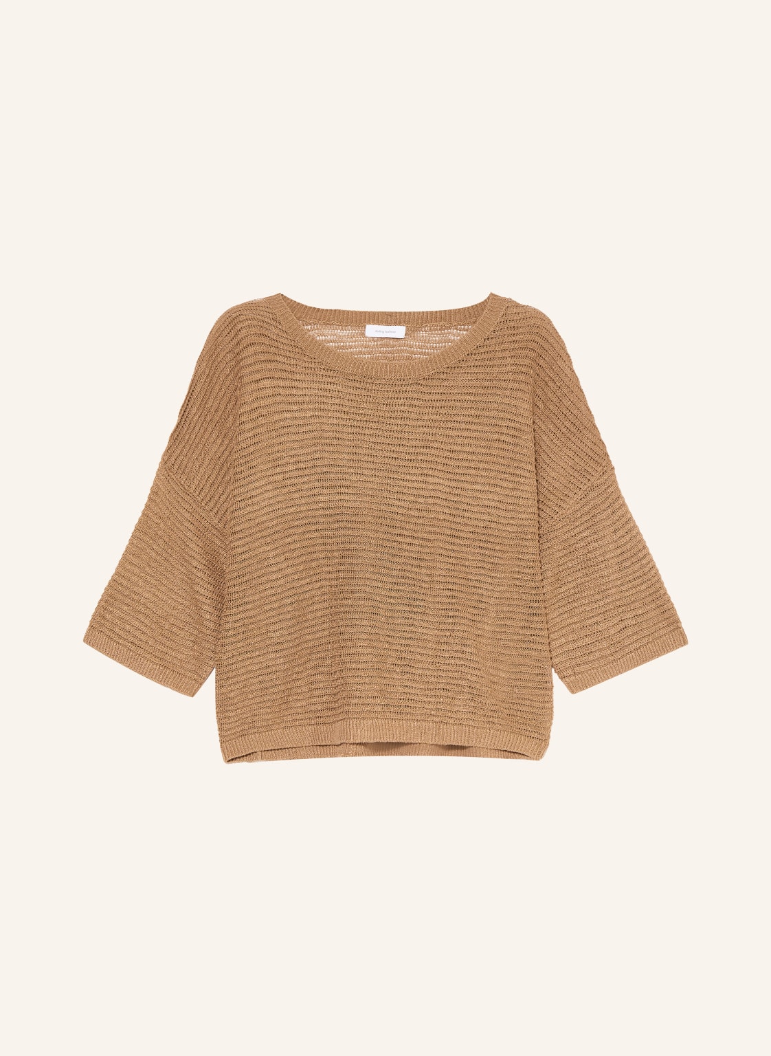 Kurze Ärmel. Gerader Schnitt. Rippbündchen an den Ärmeln. Überschnittene Schultern. Rundhalsausschnitt. Aus Leinen. Unifarben. Semitransparente Optik. Rippbündchen am Saum. Strukturstrick. Strukturierte Haptik