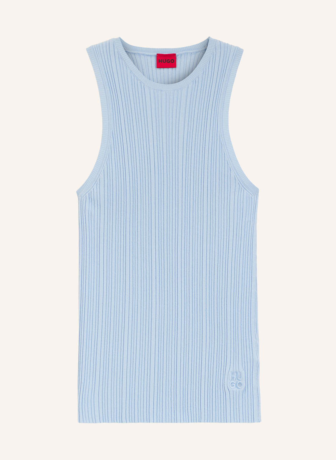 Schmal geschnittenes HUGO Top mit Racerback, ideal für Casual-Looks. Softer Krepp. Unregelmäßige Rippstruktur.Dieses Produkt wird mit Zellulosefasern gefertigt, die aus dem natürlichen Rohstoff Holz aus nachhaltiger bewirtschafteten Wäldern gewonnen werden. Gemeinsam mit externen Organisationen setzen wir uns für den respektvollen Umgang mit Urwäldern und gefährdeten Wäldern ein. Slim Fit. Rundhalsausschnitt. Ärmellos. Rückenlänge: 56 cm