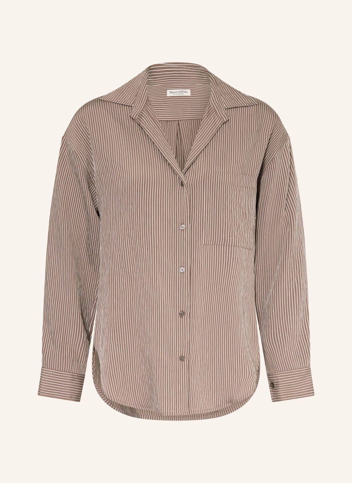 Gerader Schnitt. Hemdblusenkragen. Schließt mit durchgehender, glatter Knopfleiste. Einknopf-Manschette. Abgerundeter Saum. Quetschfalte an der Rückenpasse. Streifenmuster allover. Strukturierte, leichte Qualität