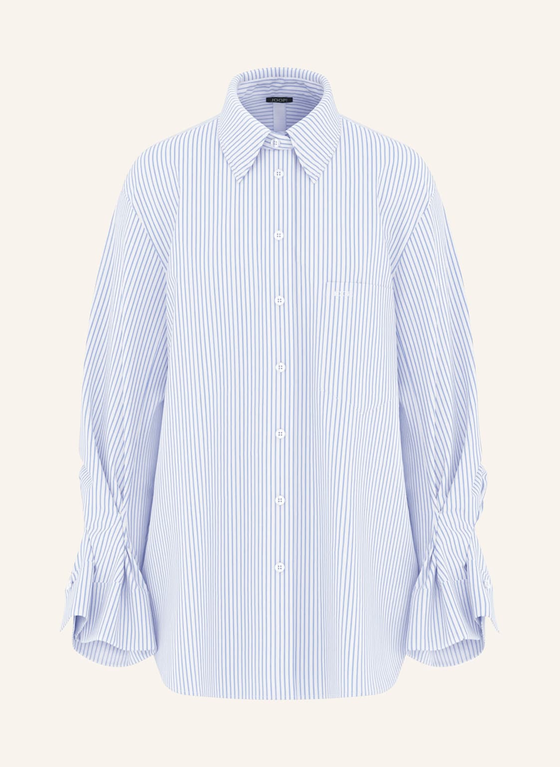 Lange Ärmel. Weiter Schnitt. Überschnittene Schultern. Seitenschlitze. Hemdblusenkragen. Einknopf-Manschetten. Aus Baumwolle. Motiv-Print. Used-Optik. Verlängerte Rückenpartie. Abgerundeter Saum. Brusttaschen. Breite Rückenpasse. Druckknopfleiste. Durchgehende Knopfleiste. Verdeckte Knopfleiste. Feste Haptik. Denim-Qualität. Elastische Qualität. Metalldetails
