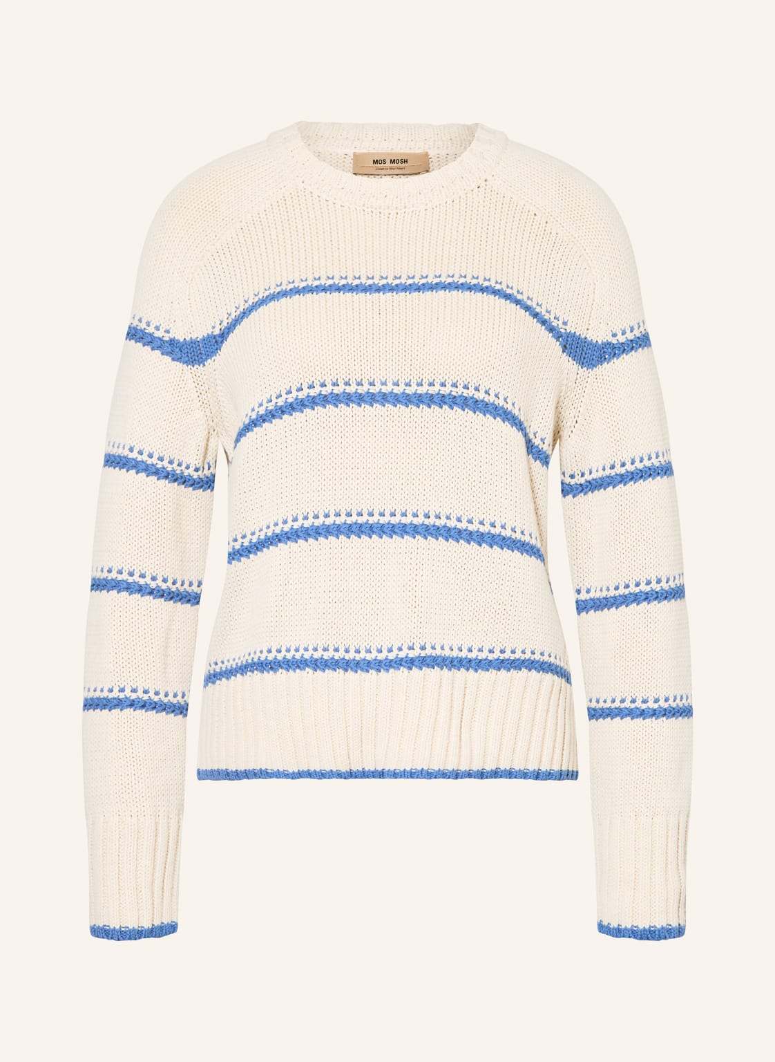 Lange Ärmel. Leicht taillierter Schnitt. Rippbündchen an den Ärmeln. Rundhalsausschnitt. Label-Detail. Aus Baumwolle. Streifenmuster. Rippbündchen am Saum. Strukturstrick. Leichte Haptik. Elastische Qualität