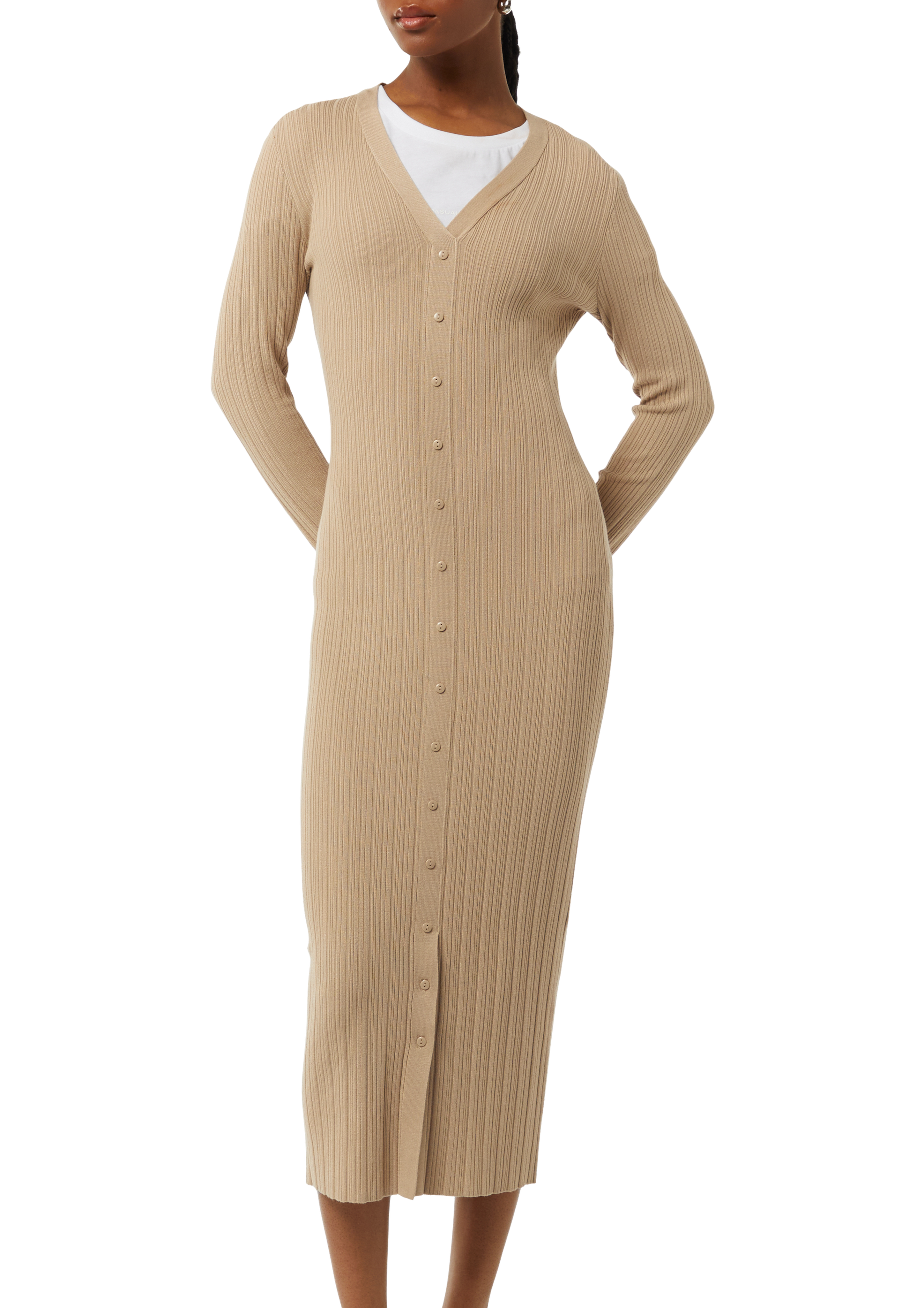 Raffinierte Eleganz trifft auf Komfort: Das gerippte Midikleid mit dekorativer Knopfleiste ist Ihr neues Lieblingsteil für jeden Anlass. Der Feinstrick schmiegt sich angenehm an Ihre Silhouette und kreiert eine schlanke Linie. Kombinieren Sie es mit Sneakern für einen lässigen Look oder mit Pumps für einen eleganten Auftritt. Die Knopfleiste setzt einen modischen Akzent und ermöglicht vielseitige Styling-Optionen. #todayfortomorrow