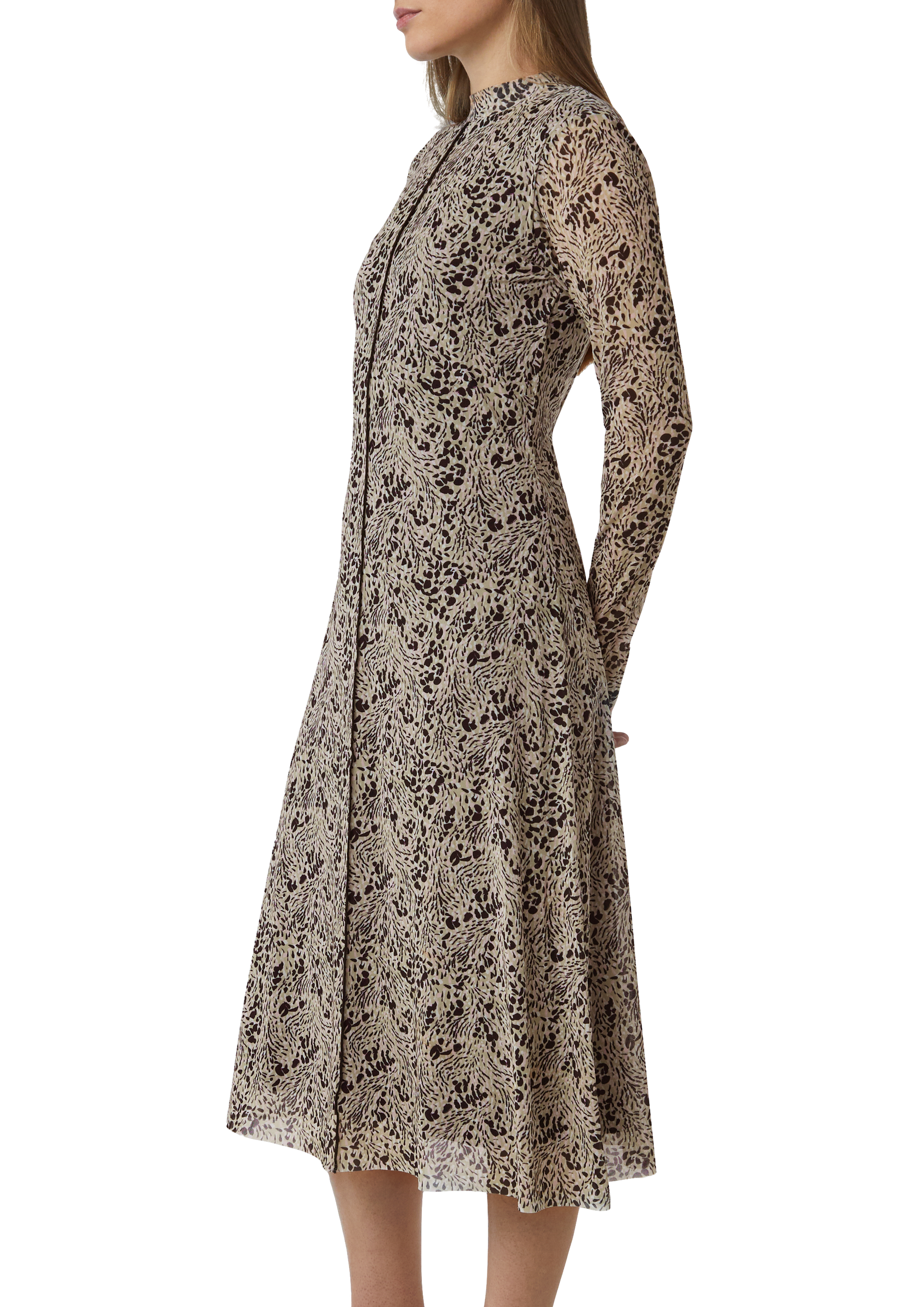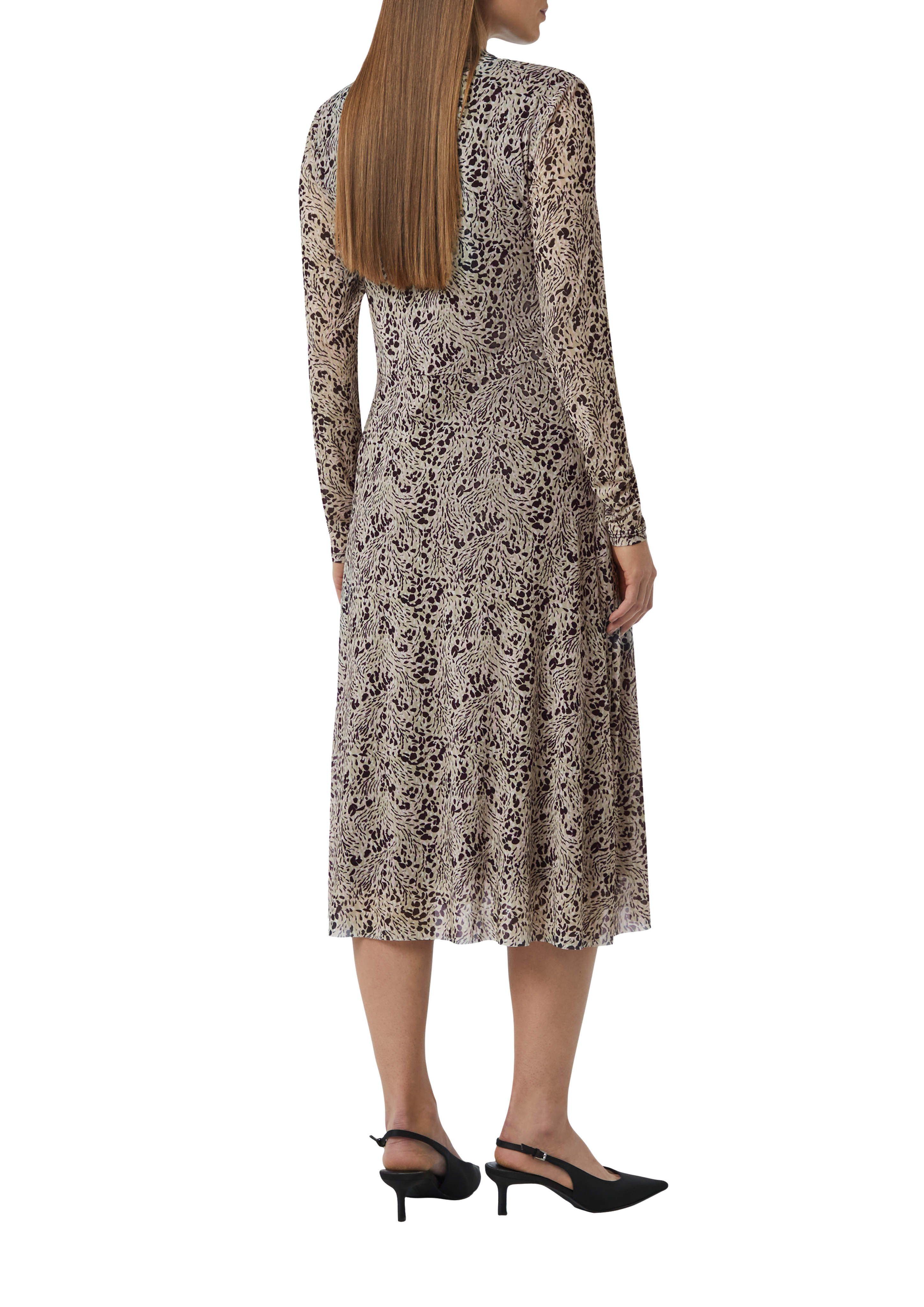 Zeigen Sie sich feminin elegant mit unserem hochgeschlossenen Midi-Kleid aus Mesh. Der Stehkragen und die langen Ärmel verleihen dem Piece eine raffinierte Note, während die antaillierte Passform Ihre Silhouette gekonnt betont. Das weiche Jerseyfutter sorgt für angenehmen Tragekomfort. Stylen Sie es casual mit Sneakern für einen entspannten Look oder werten Sie es mit Stilettos für besondere Anlässe auf. Ein vielseitiges Must-have für Ihren Kleiderschrank.