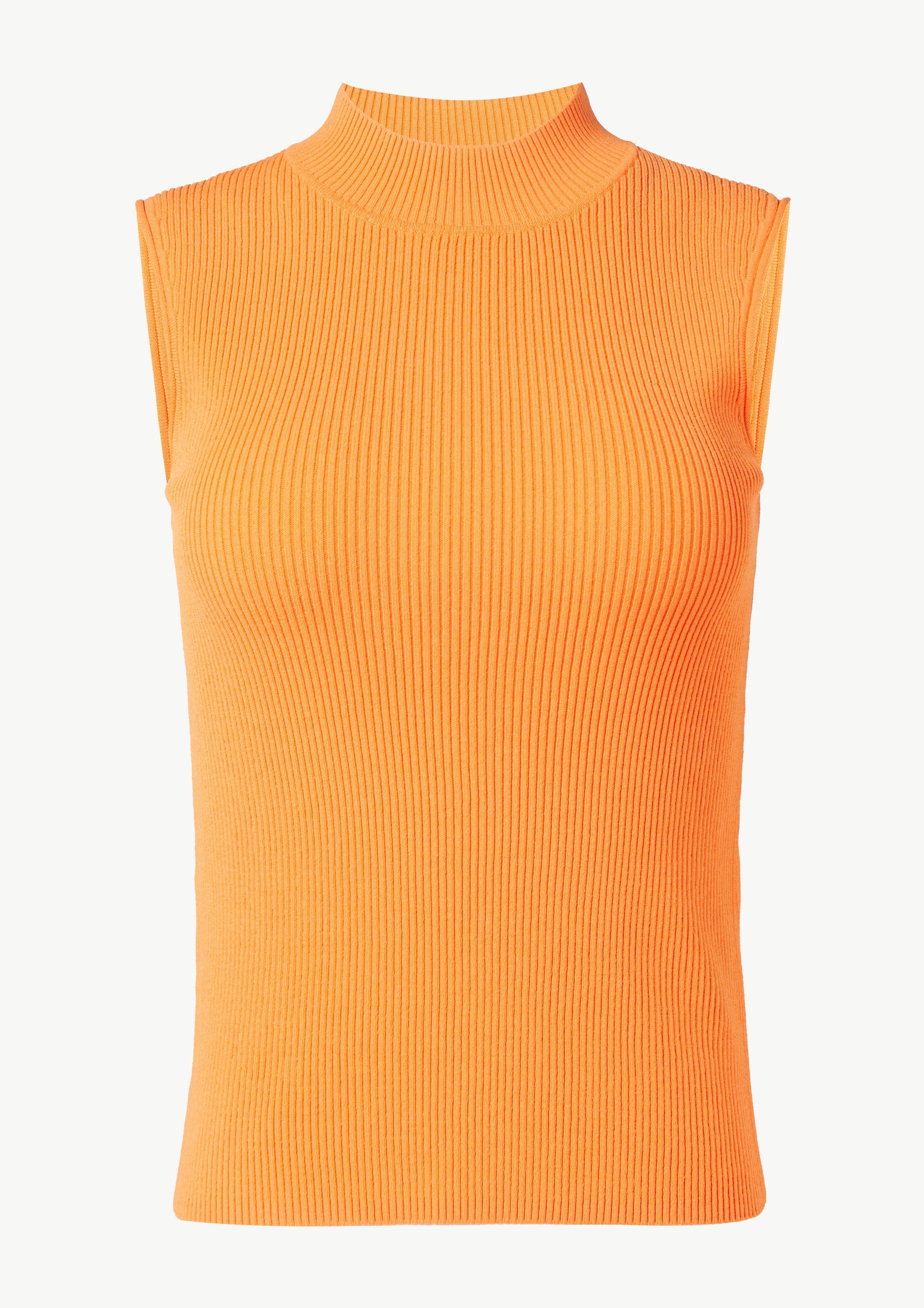 Feinstrick. Gerader Schnitt. Rundhalsausschnitt. Kurze Ärmel. Logo-Münze am Saum. Zick-Zack-Muster allover