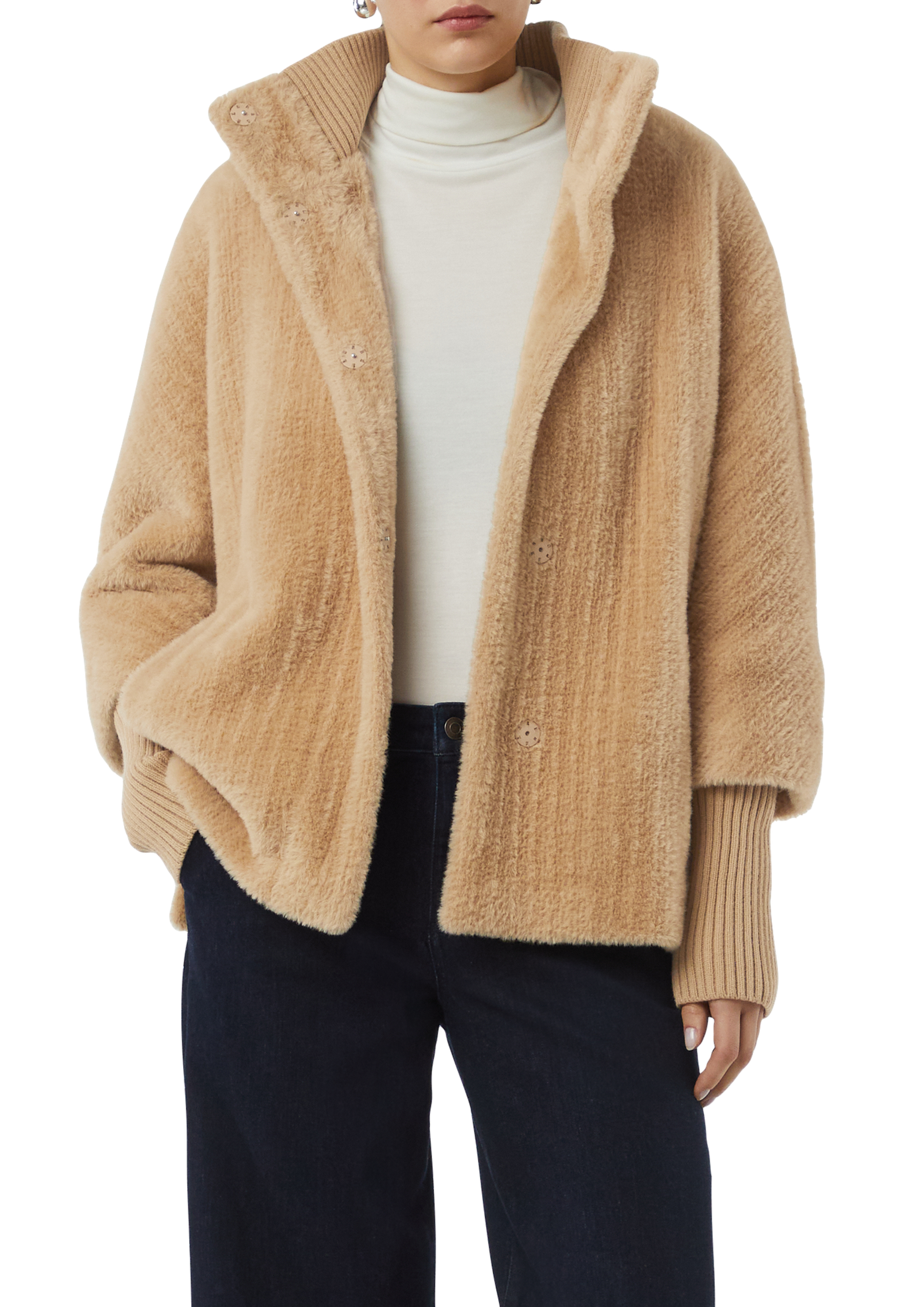 Kuschelig-chic durch die kalte Jahreszeit: Das Cape aus flauschigem Teddyplüsch vereint Stil mit Komfort. Strickdetails am Kragen verleihen dem Piece eine raffinierte Note. Perfekt für Layering-Looks geeignet, lässt sich diese Outdoor-Jacke vielseitig kombinieren. Ob über einem schicken Outfit oder casual zu Jeans – Sie kreieren mühelos einen trendigen Look für jede Gelegenheit. #todayfortomorrow