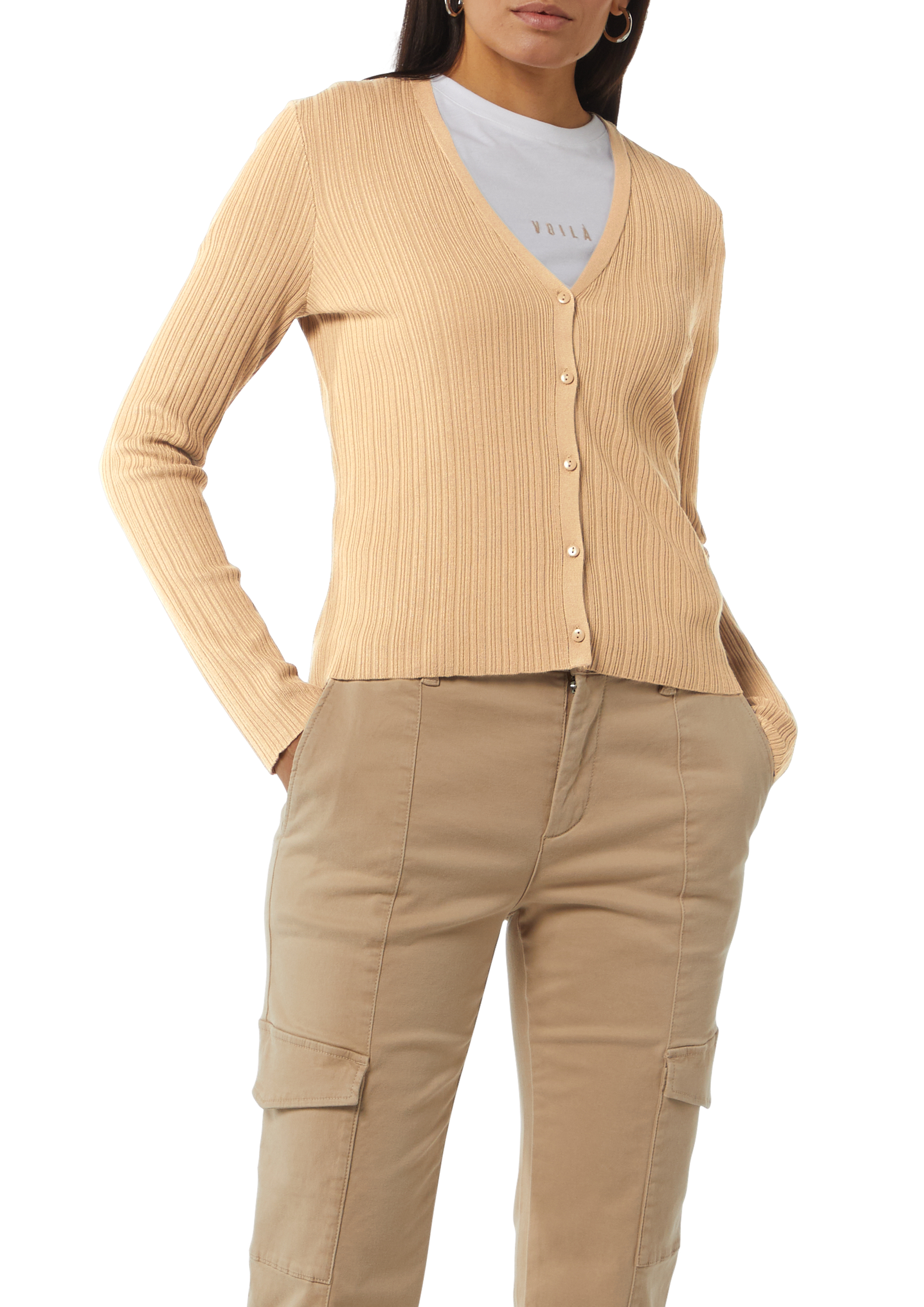 Schmeichelnde Silhouette trifft auf zeitlosen Chic: Die gerippte Strickjacke im Slim Fit ist Ihr neues Lieblingsteil für vielseitige Looks. Der V-Ausschnitt setzt feminine Akzente, während die Rippware für angenehmen Tragekomfort sorgt. Stylen Sie die Jacke lässig über einem Shirt oder elegant zu einer Bluse – sie passt sich mühelos Ihrem individuellen Stil an. #todayfortomorrow