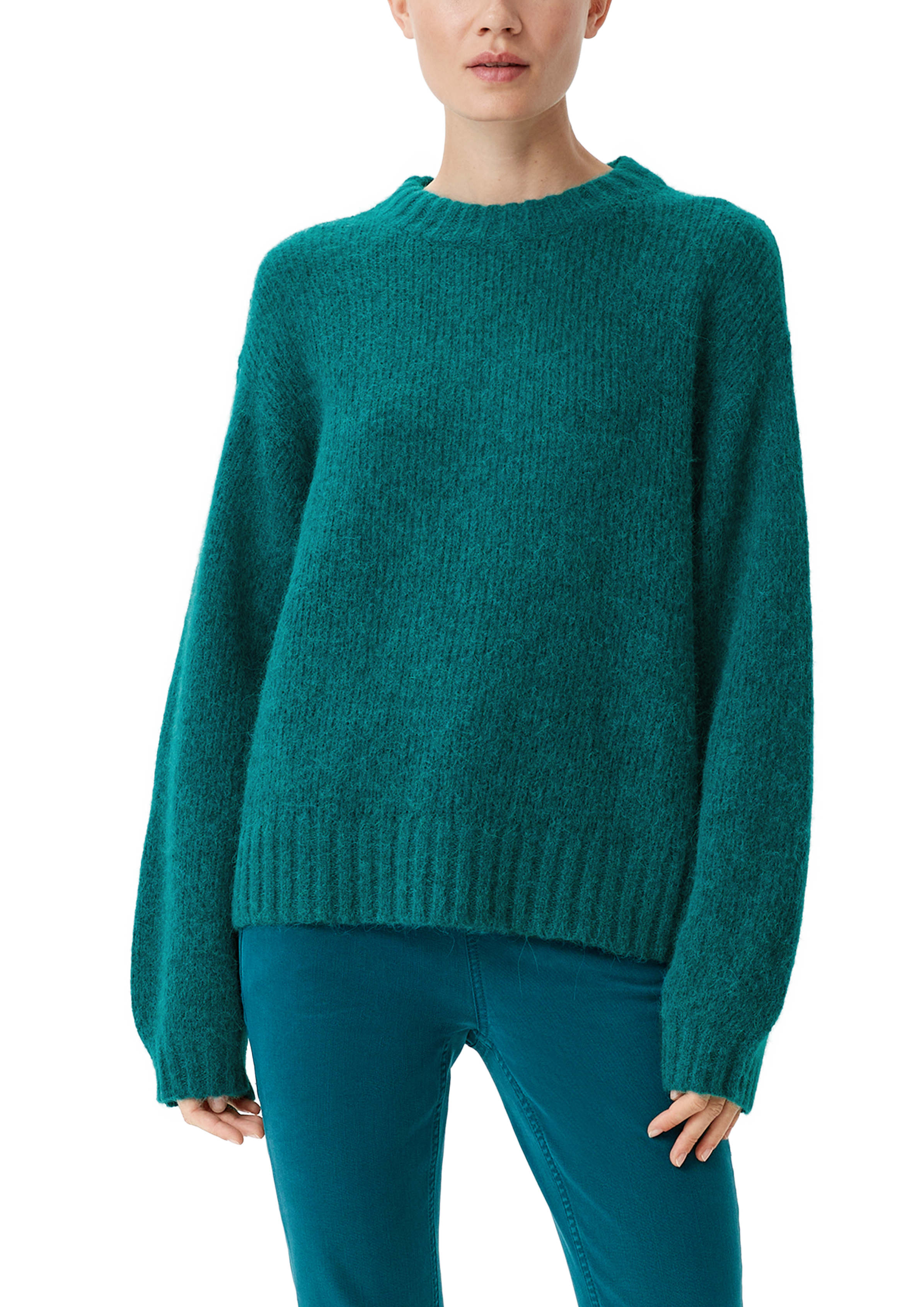 Lässig und kuschelig: der Strickpullover aus hochwertiger Alpaka-Mischung. Sein Loose Fit umspielt lässig Ihre Silhouette, während die langen Ärmel und Rippblenden an Saum und Ausschnitt für Struktur sorgen. Ein stylischer Begleiter für entspannte Casual-Looks mit Potenzial für Layering bei kühleren Abendstunden.