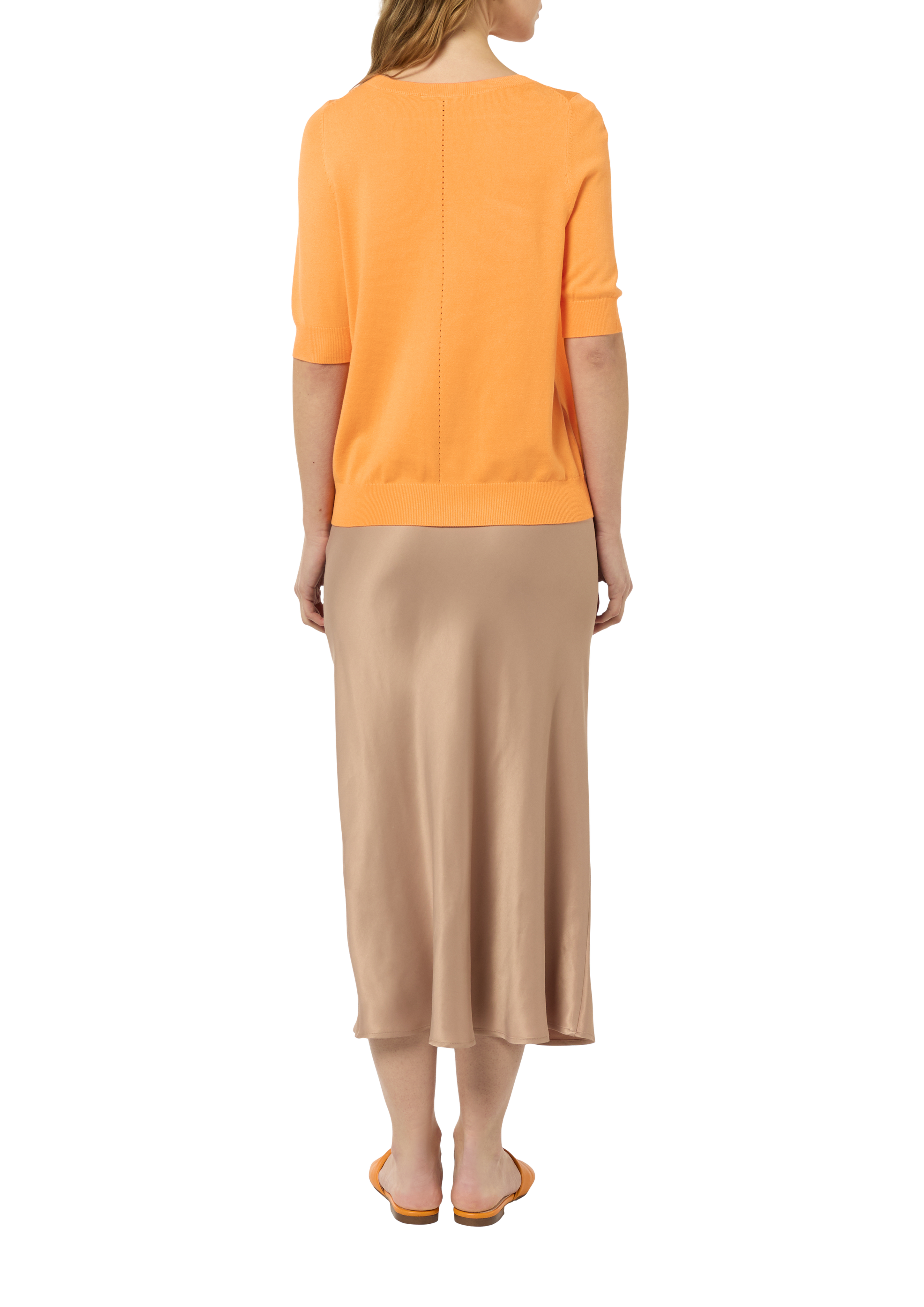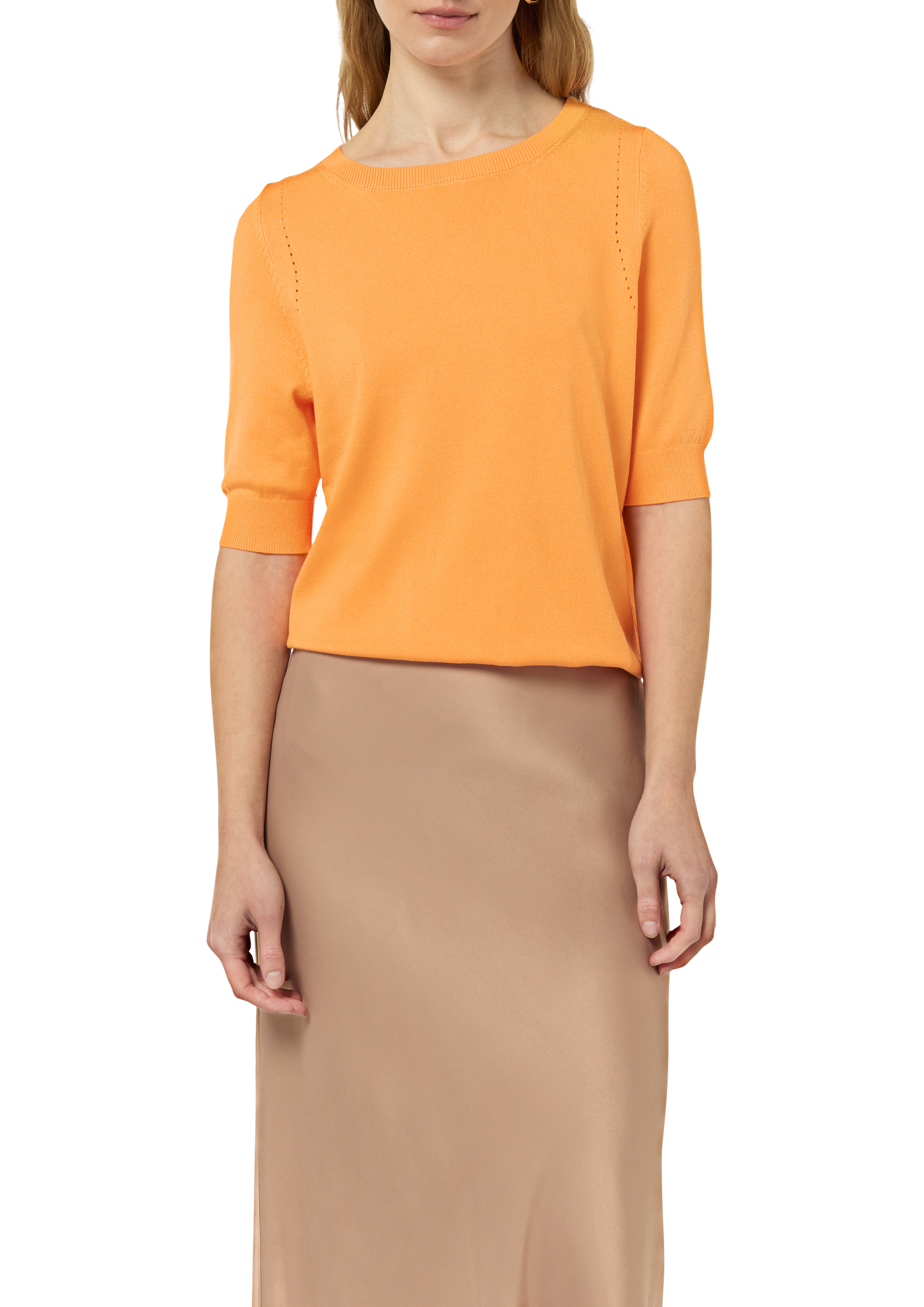 Dieser luftige Strickpullover aus Viskosemix wird Ihr neuer Begleiter. Die kurzen Ärmel und der Slim Fit-Schnitt verleihen Ihnen eine lässig-feminine Silhouette. Dank der elastischen Qualität und der legeren Optik lässt er sich vielseitig kombinieren – ob zu Shorts oder Chinos, Sie stylen ihn für jede Casual-Gelegenheit.