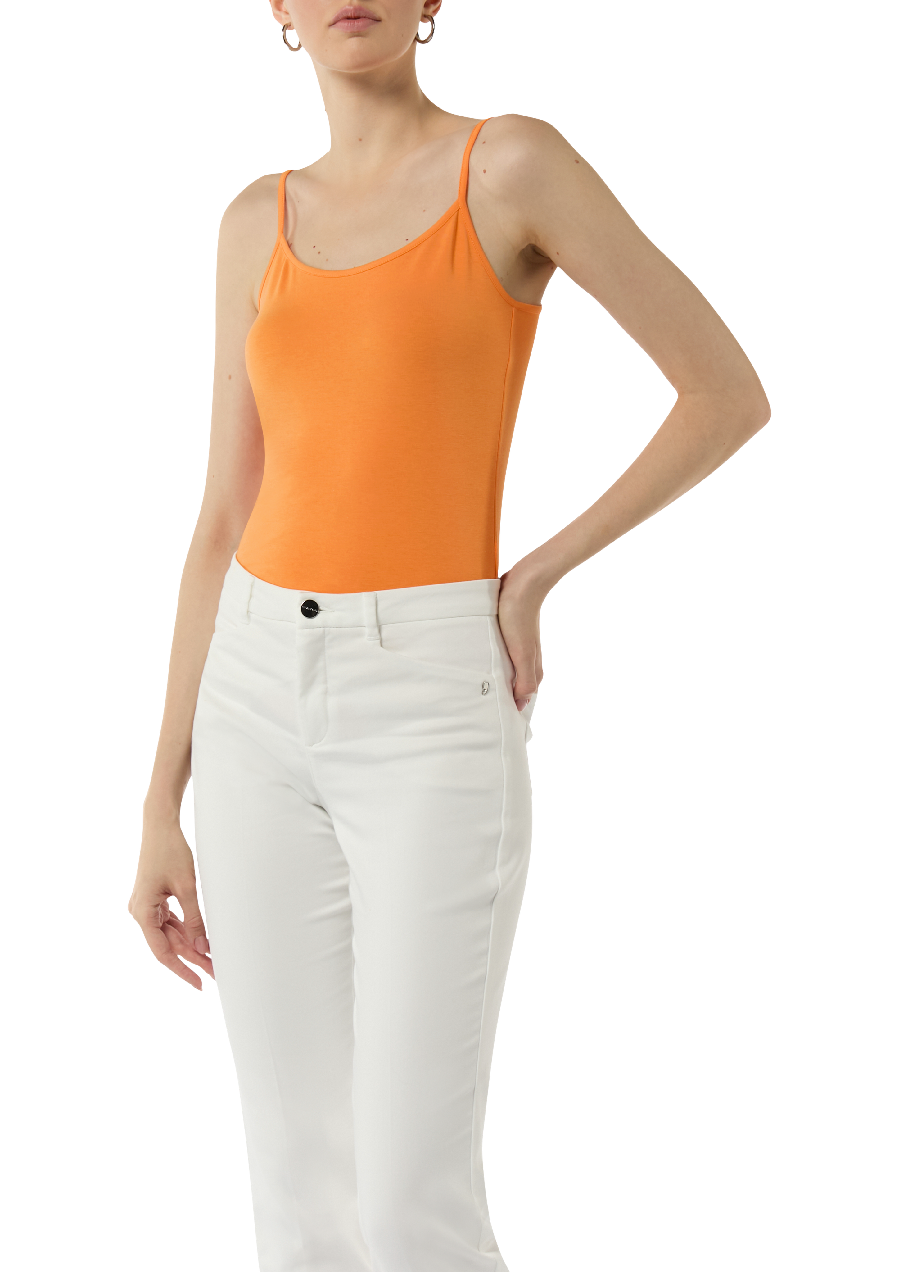 Luftig leicht und elastisch umspielt das ärmelllose Spaghettiträgertop Ihre Silhouette. Das Modal-Baumwollgemisch verleiht dem Piece Formbeständigkeit und Tragekomfort. Ob unter einer Jacke für den Office-Look oder solo mit Shorts gestylt für entspannte Stunden: Das Multitalent begleitet Sie durch den Sommer. #todayfortomorrow
