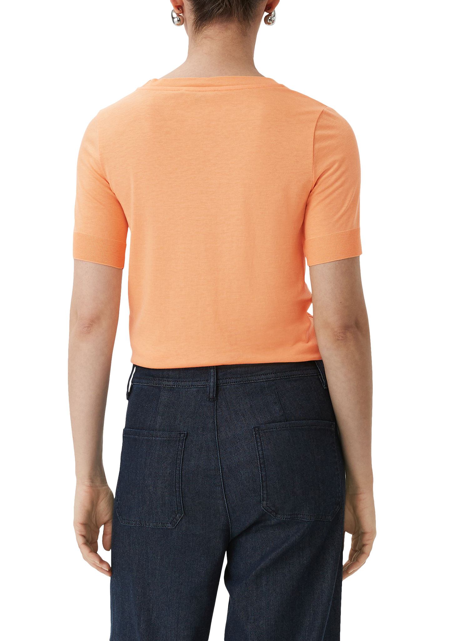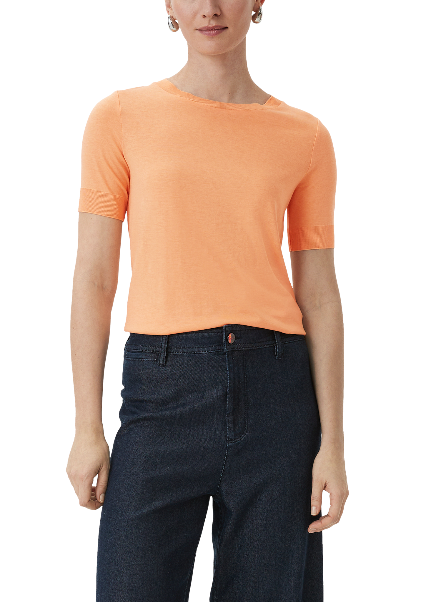 Leicht und luftig – das kurzärmlige T-Shirt aus feinem Strickjersey. Die Mischung aus Lyocell und Baumwolle sorgt für angenehmen Tragekomfort. Der Regular Fit und der Crew Neck verleihen Ihnen eine feminine Silhouette. Mit Rippblende am Saum und kurzen Ärmeln kreieren Sie lässige Looks für warme Tage.